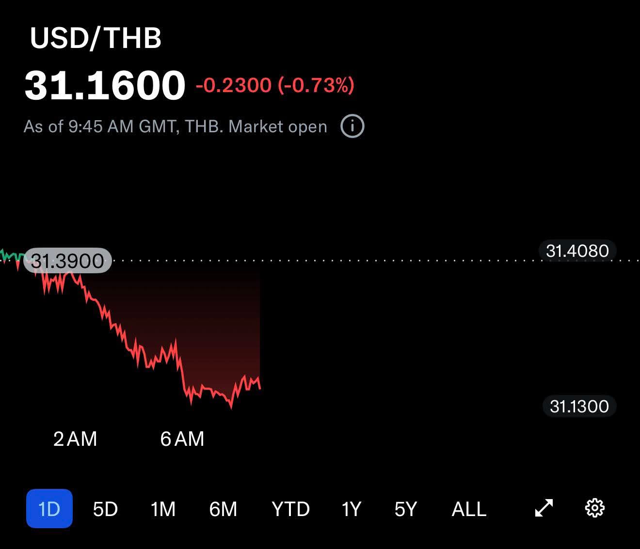 1 USD = 31.16 บาท เงินบาท แข็งค่าสุดในรอบ 4 ปีครึ่ง.. เมื่อเทียบกับดอลลาร์สหรัฐ ซึ่งวันนี้เงินบาทแข็งค่าขึ้นอย่างรวดเร็ว