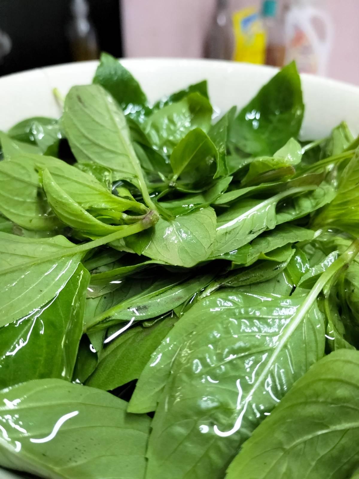 3. ใบโหระพา เด็ดเอาแต่ใบ ล้างให้สะอาด