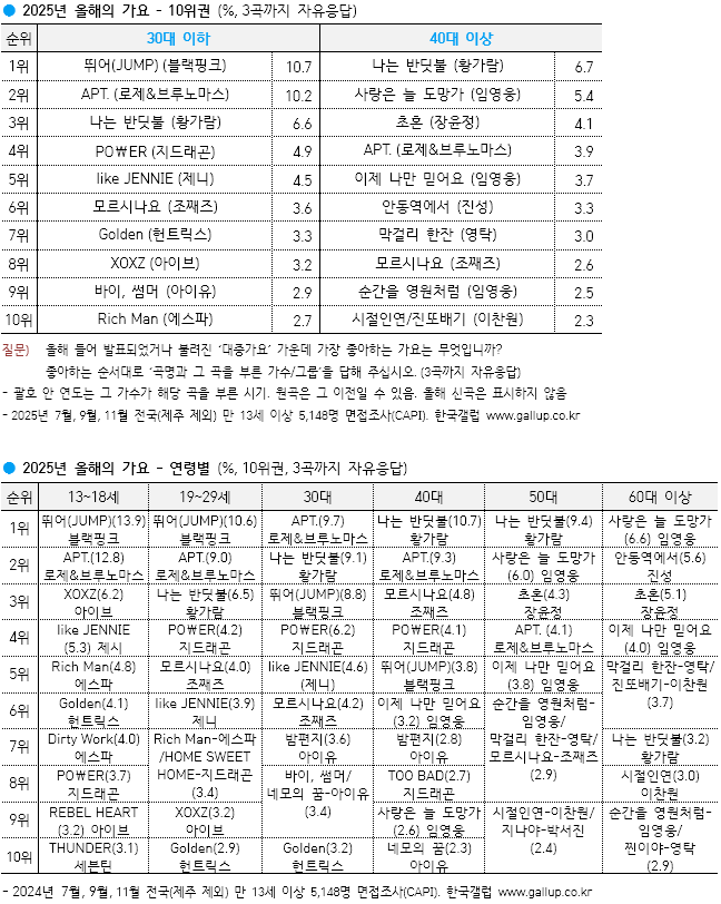 Gallup Korea 2025 ประกาศผลสำรวจเพลงและนักร้องยอดนิยมประจำปี