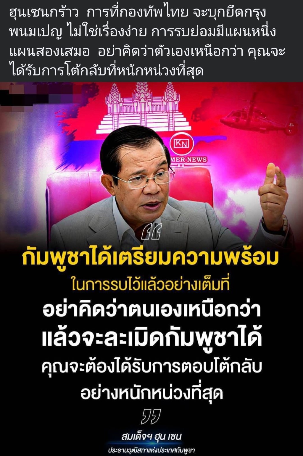 คิอว่าไทยมีเป้าที่จะกำจัดแก๊งแสกมเมอร์ แต่ไปทำให้ทางฝั่งโน้นเสียผลประโยชน์มหาศาล เลยเหมาเอาปัญหาอื่นๆ มารวมด้วย ทั้งกรณีพื้นที่ทับซ้อนชายแดน ปัญหาการที่ต้องวางให้ฮุน มาเนต คือผู้สืบทอดอำนาจ คือเรื่องร