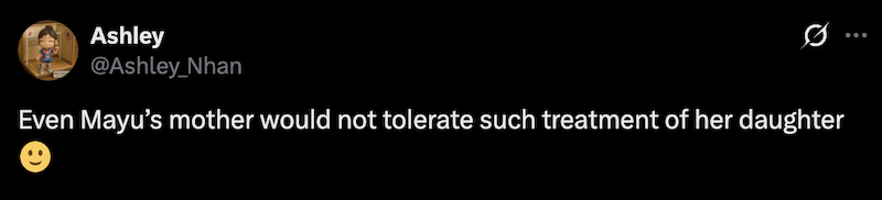 "Even Mayu’s mother would not tolerate such treatment of her daughter 🙂