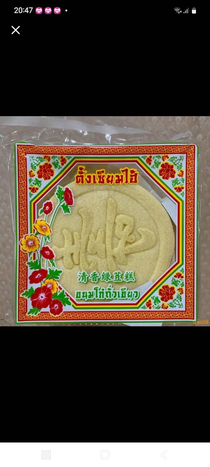 ขนมไหว้พระจันทร์แต้จิ๋ว ทำจากแป้งถั่วเขียว เนื้อนุ่ม หอม หวาน มีลวดลายมงคลจากการปั๊มด้วยแม่พิมพ์ ซึ่งมีความหมายดีต่างๆ