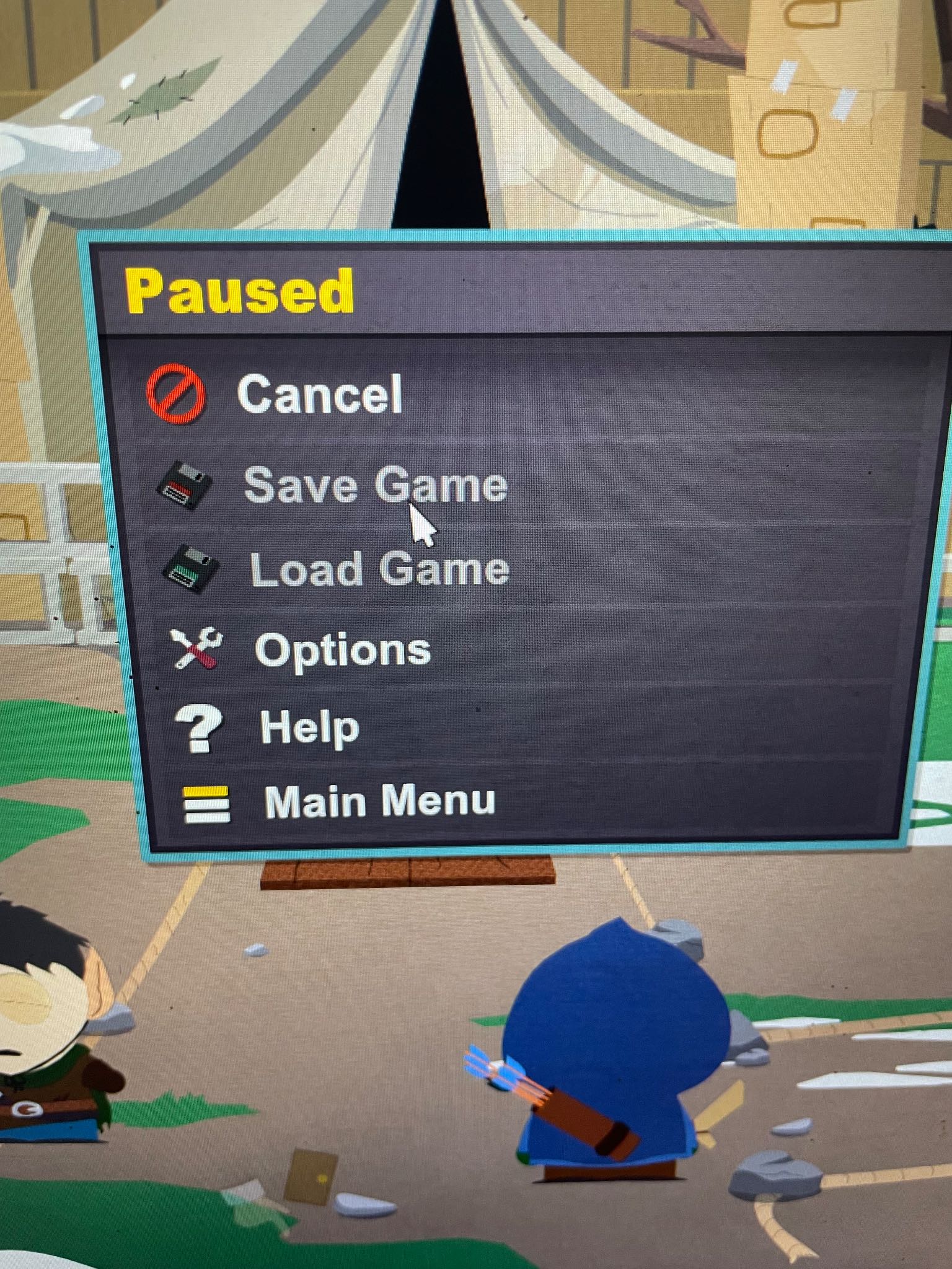 เซฟsouth park the stick of truth มันทำยังไงใครก็ได้ช่วยหน่อยครับเล่นมา5ชม.นึกว่าเซฟออโต้เข้ามาอีกทีหายใครก็ได้สอนหน่อยครับ
