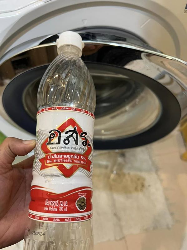 • ตอนซักผ้า ลองผสมน้ำส้มสายชูเล็กน้อยกับเกลือประมาณ ๑ กำมือ แล้วเทลงไปในเครื่องซักผ้าก่อนซัก 🧺