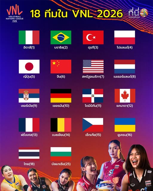 5ทีมที่จะมีบุญได้มาเยือนไตลานในVNL อยากให้เป็นทีมไหนบ้างค่ะ????