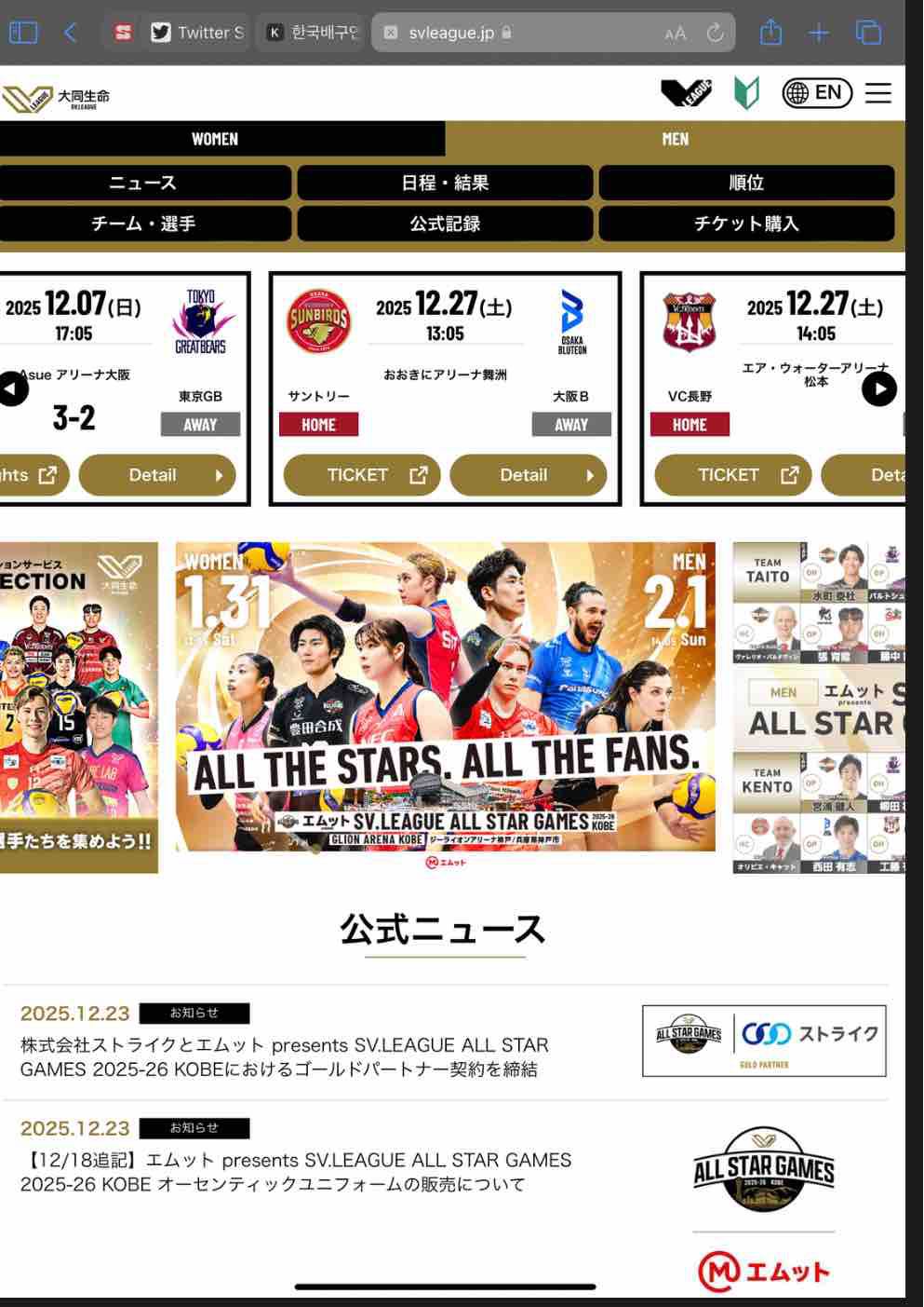 ประกาศรายชื่อนักกีฬาร่วมเล่นแมตซ์ All star ⭐️ ในวันที่ 31 มกราคม 2026 🏟️ GLION ARENA KOBE *** ด้านบนสีทอง 💛 นักกีฬาได้รับเลือกจากคะแนนโหวตในแอปVコレ และทางเว็บของJSPORT *** ด้านล่างสีเงิน 🩶 นักกีฬาได