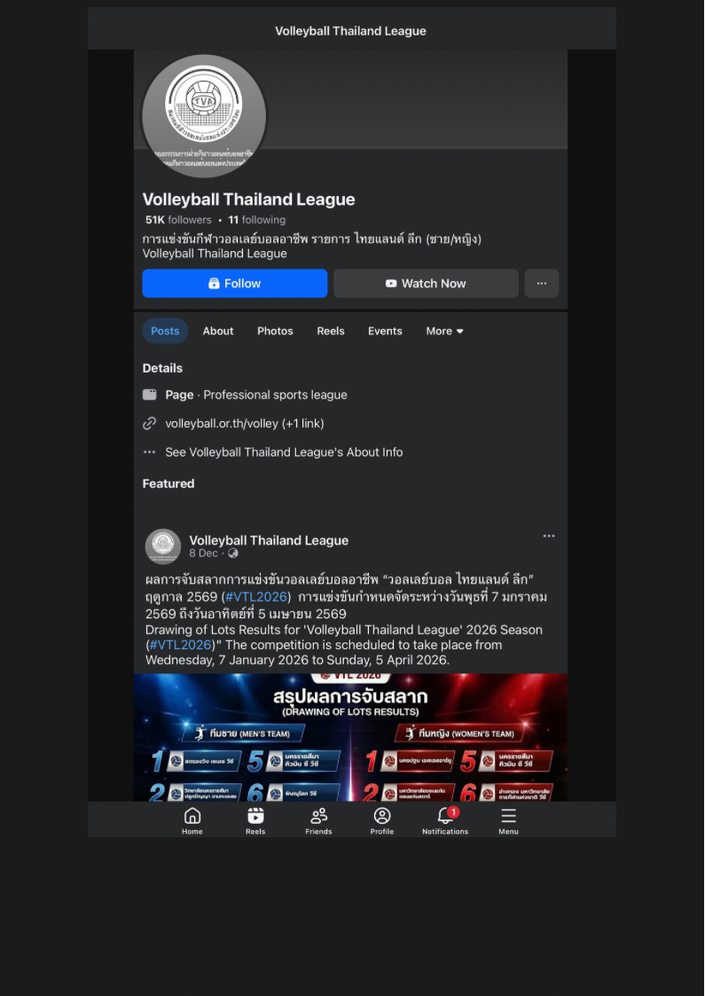 Website Volleyball Thailand League 2025-2026 ไม่เห็นมี หรือใช้แค่ Facebook fan page
