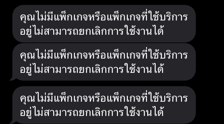 เรามีแพ็คเก็จเน็ต 250 บาท/เดือน อยู่ ทีนี้เริ่มจากปกติเราก็เติมได้ตลอด เติม 200 ก็ไม่หักอะไร พอรอบนี้อยู่ ๆ เราเติมไป 200 ดันมาสมัครเน็ตแพ็คเกจอื่นให้อัตโนมัติ กดยกเลิกไปแล้วก็แจ้งเตือบอกว่าไม่สามารถย