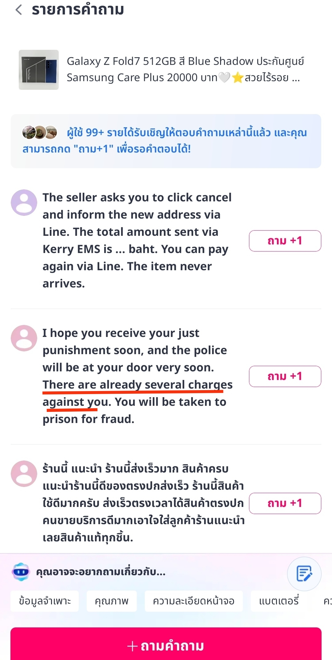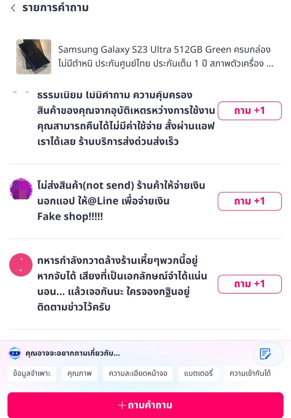 หน้าม้า เอ๋ xxxx ระดมโพสต์บน แอป lazada ในช่อง ถามผู้ใช้งานจริง