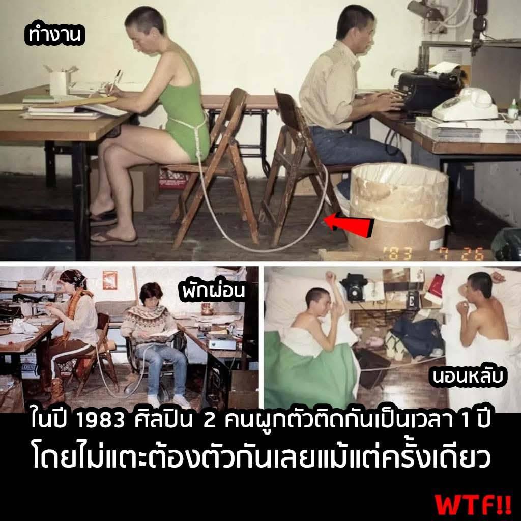 นี่ไม่ใช่บทลงโทษในคุก แต่มันคือโปรเจกต์ศิลปะระดับตำนานที่มีชื่อว่า "Rope Piece" โดยสองศิลปินใจเด็ด 2 คน ที่มีชื่อว่า Tehching Hsieh (ชาย) และ Linda Montano (หญิง) พวกเขาตัดสินใจอุทิศชีวิต 1 ปีเต็มเพื่อหาคำตอบว่า "มนุษย์จะทนกันได้แค่ไหน?"