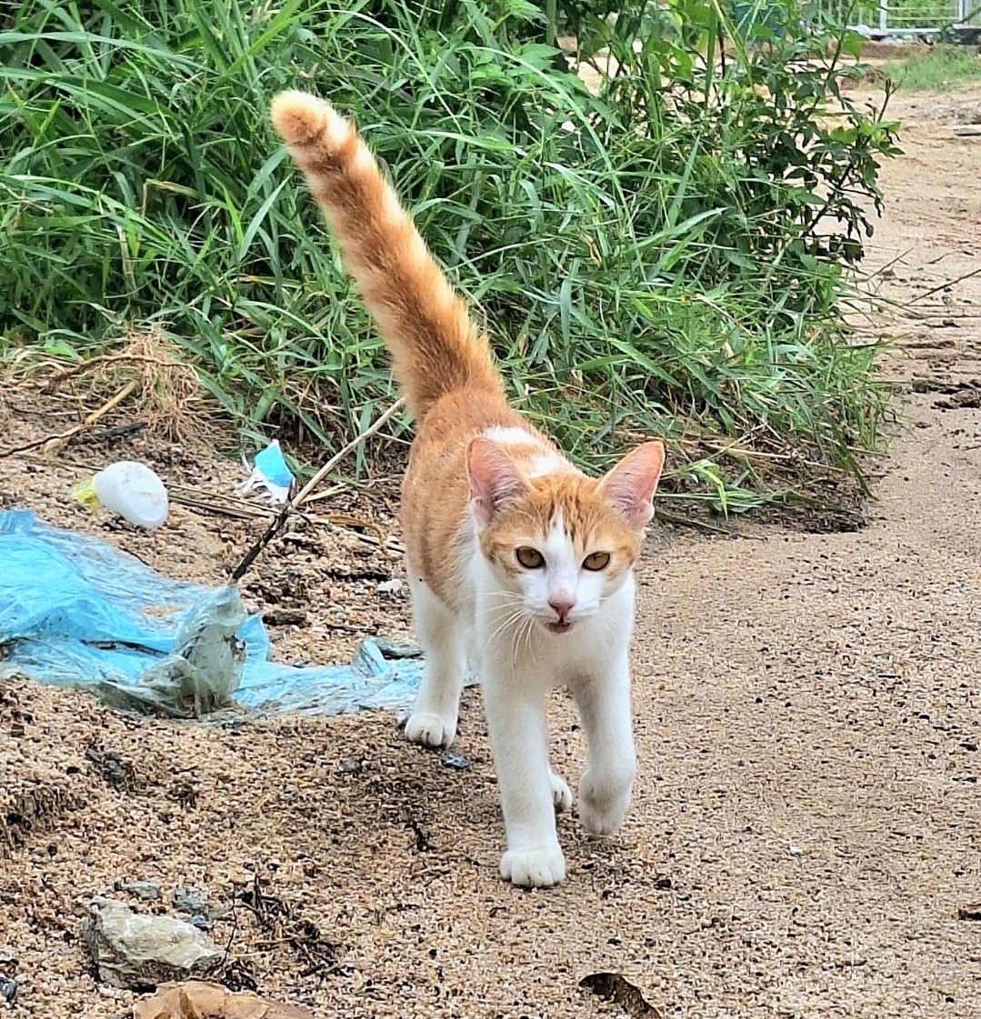 ลักษณะ แมวสีขาวส้ม เพศเมีย (ทำหมันแล้ว) มีรอยสักในหูรูปตัว Y