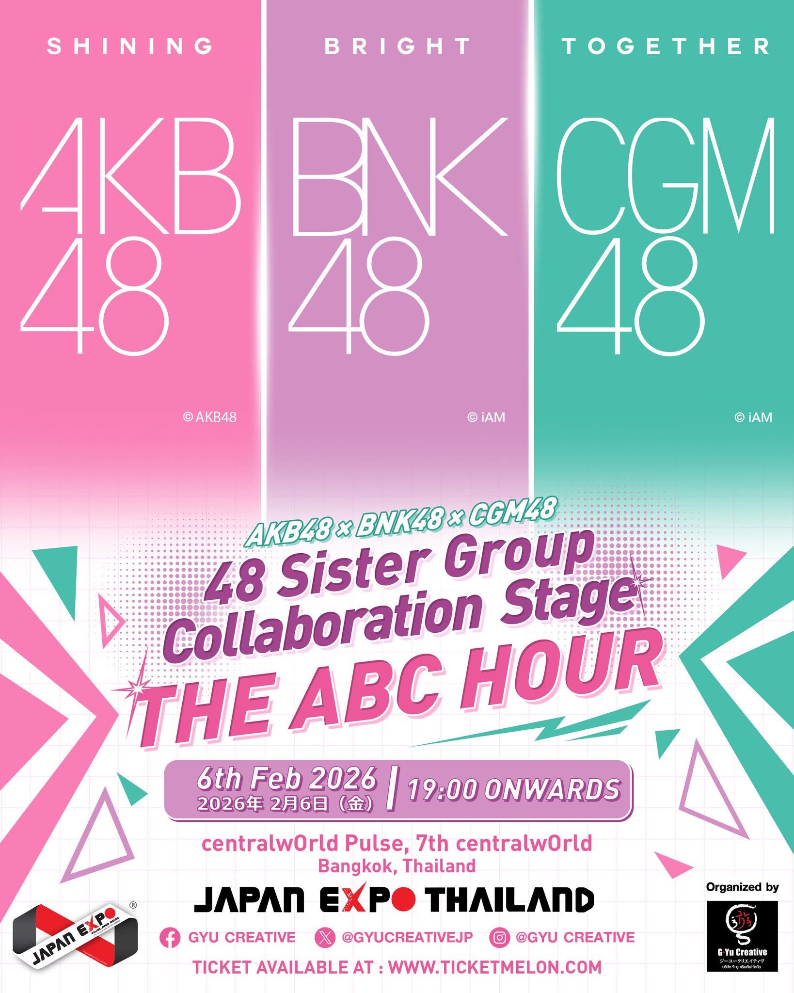 ฝ่ายจัดงาน Japan Expo Thailand 2026 ประกาศรายชื่อสมาชิกวง BNK48 ที่จะได้ขึ้นแสดงในสเตจพิเศษ THE ABC HOUR ออกมาแล้ว ซึ่งสเตจนี้ถือเป็นการรวมตัวครั้งสำคัญของสามวงไอดอลเครือ 48 Group ทั้งวงพี่ AKB48 จากญ