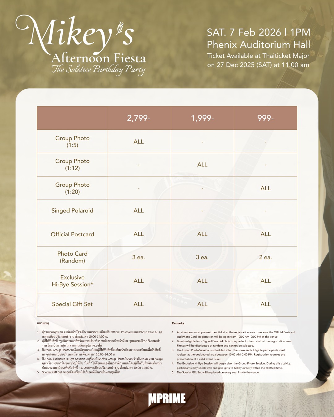 รายละเอียดจำหน่ายบัตร : http://thaiticketmajor.com/concert/mikeys-afternoon-fiesta-the-solstice-birthday-party.html