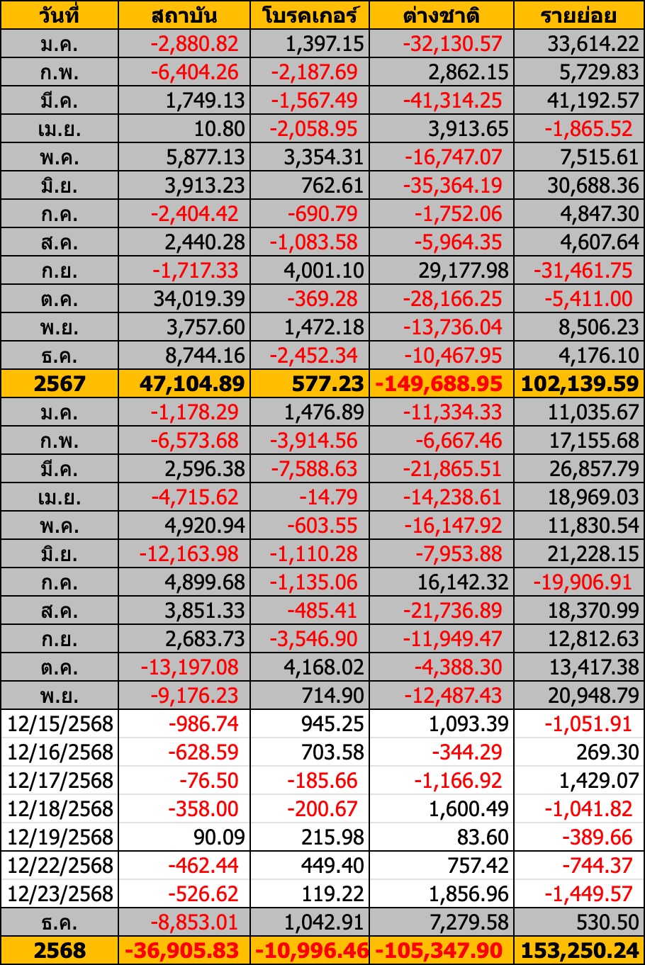 Sinthorn Summary 23/12/2568 : ต่างชาติซื้อสุทธิ 1,856.96 ลบ.