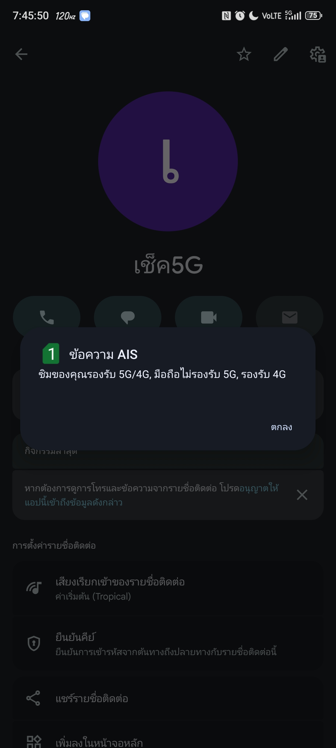 วาน Ais ช่วยเช็คsim ว่ารับ5G SA ได้ไหมครับ