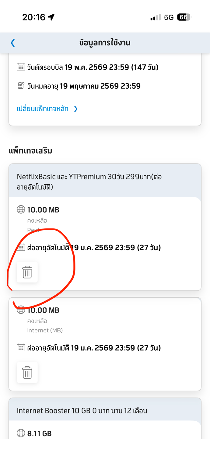 อยากยกเลิกแพ็คเน็ตเพราะรู้สึกจ่ายไม่ไหวแต่กดที่รูปถังขยะแล้วก็ยกเลิกไม่ได้