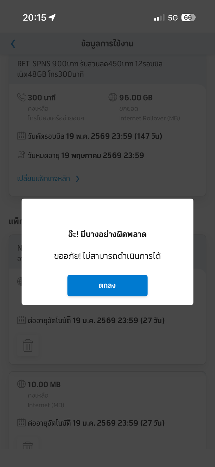 ยกเลิกโปรเสริมในแอพดีแทคไม่ได้เลย ขึ้นว่ามีบางอย่างผิดพลาดตลอด
