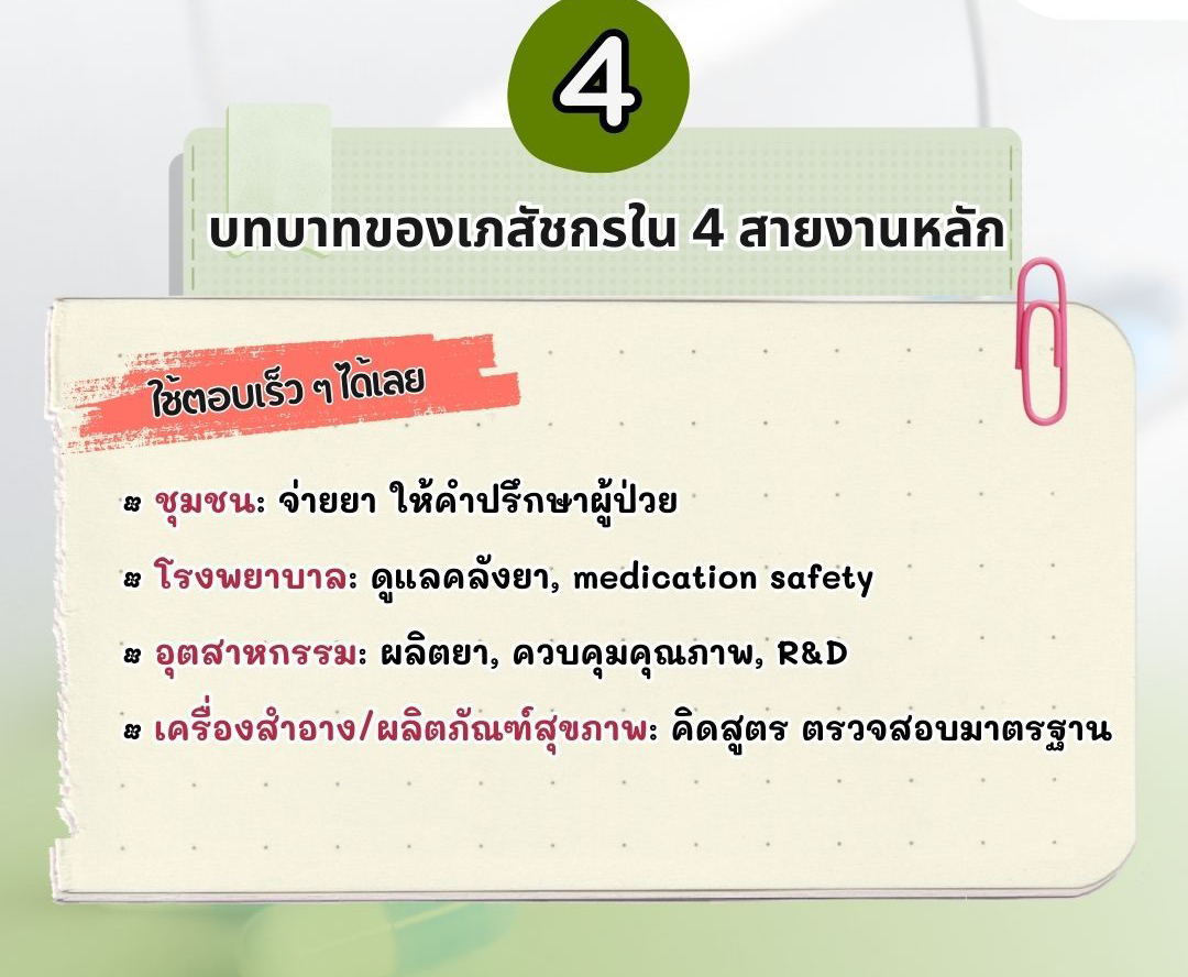 4. บทบาทเภสัชกรใน 4 สายงานหลัก