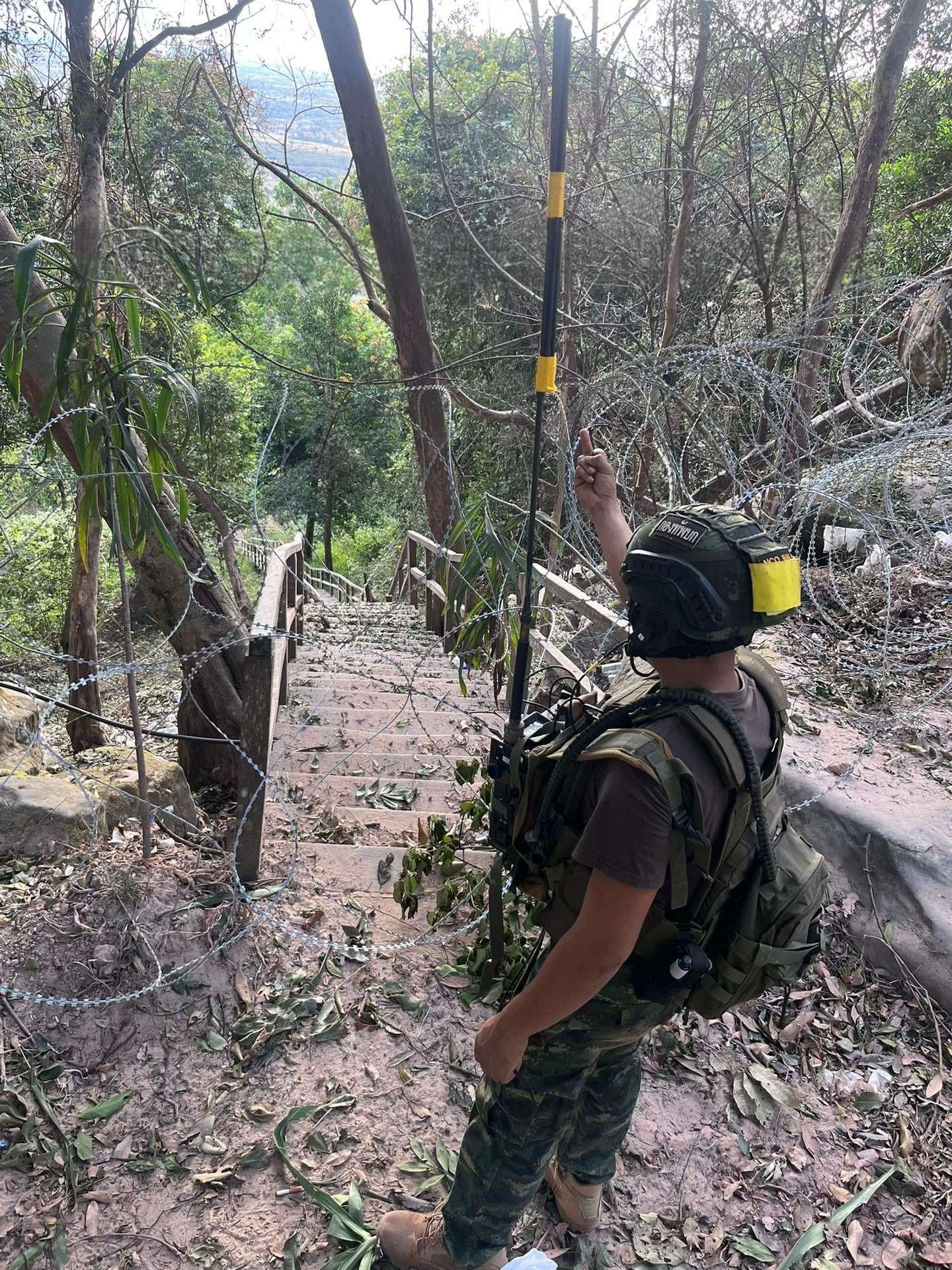 ภาพถ่ายบริเวณบันไดไม้ 1,181 ขั้นที่ปราสาทคนา หลังทหารไทยเข้ายึดคืนพื้นที่ได้สำเร็จ และสถาปนาความมั่นคงพร้อมอัญเชิญธงชาติปักเหนือพื้นที่ดังกล่าวเมื่อหลายวันก่อน
