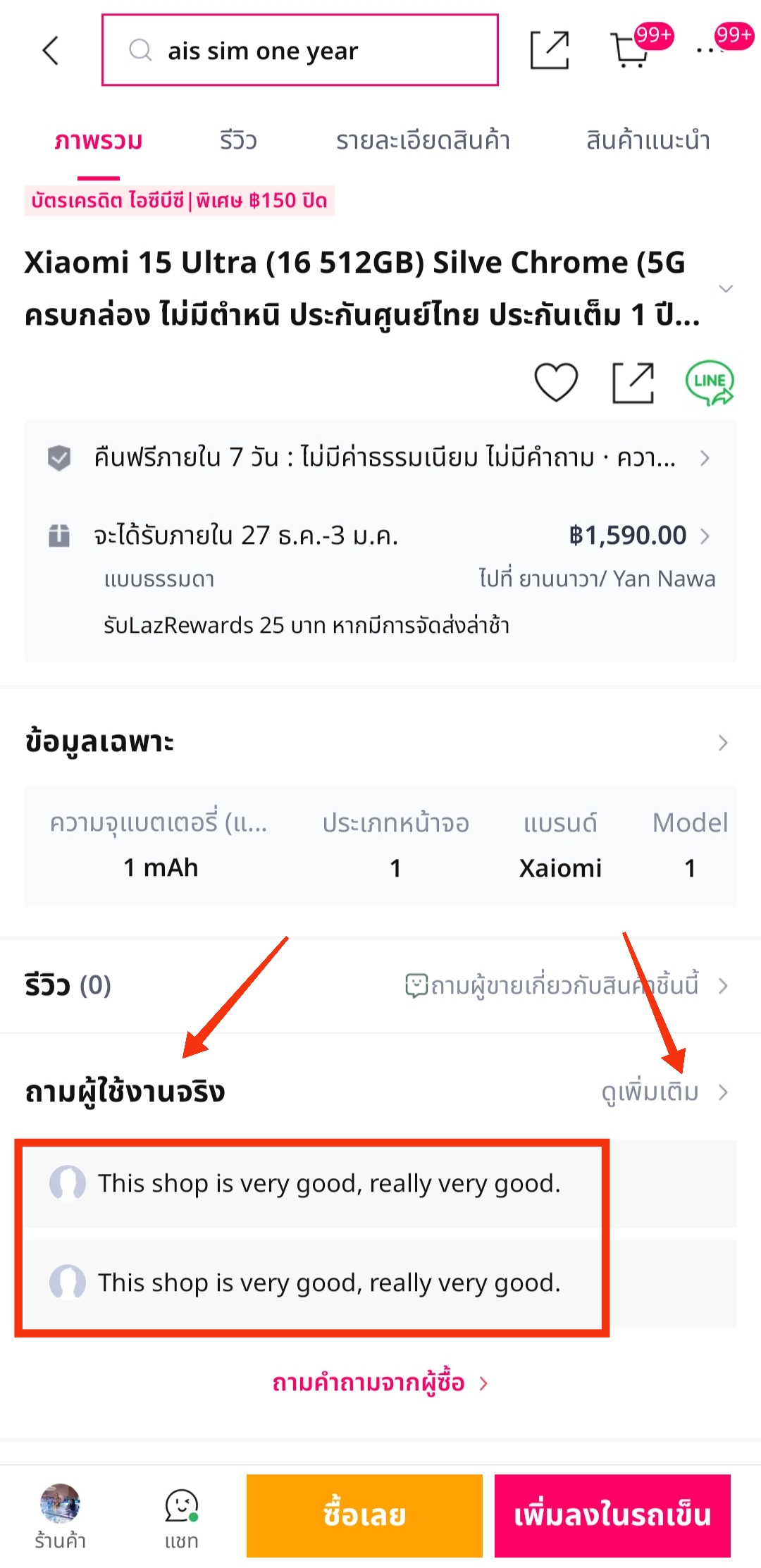 หน้าม้า เอ๋ xxxx จะโพสต์ ในช่อง " ถามผู้ใช้งานจริง " ของแอป lazada