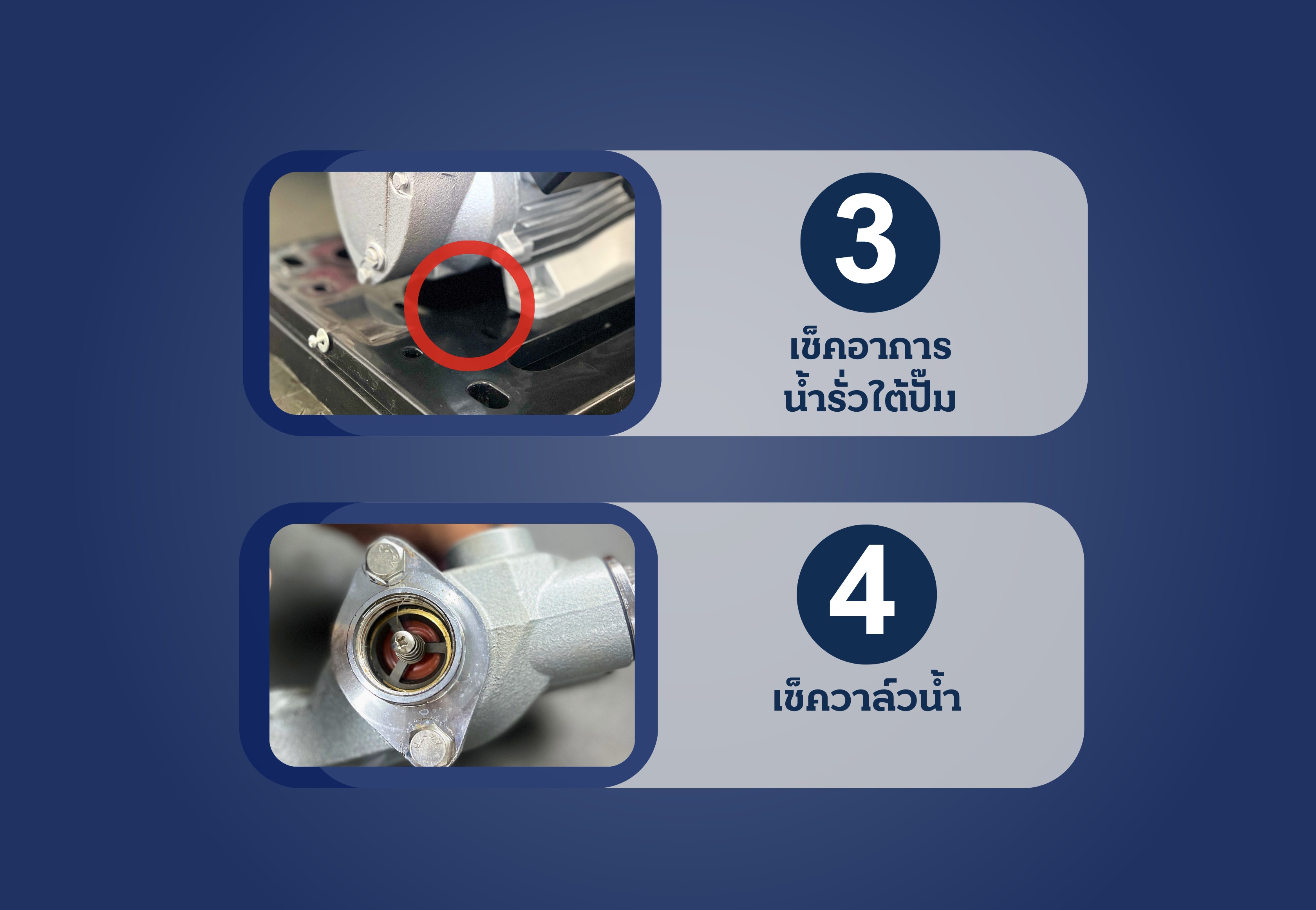 3. ตรวจสอบน้ำรั่วใต้ตัวปั๊มน้ำ