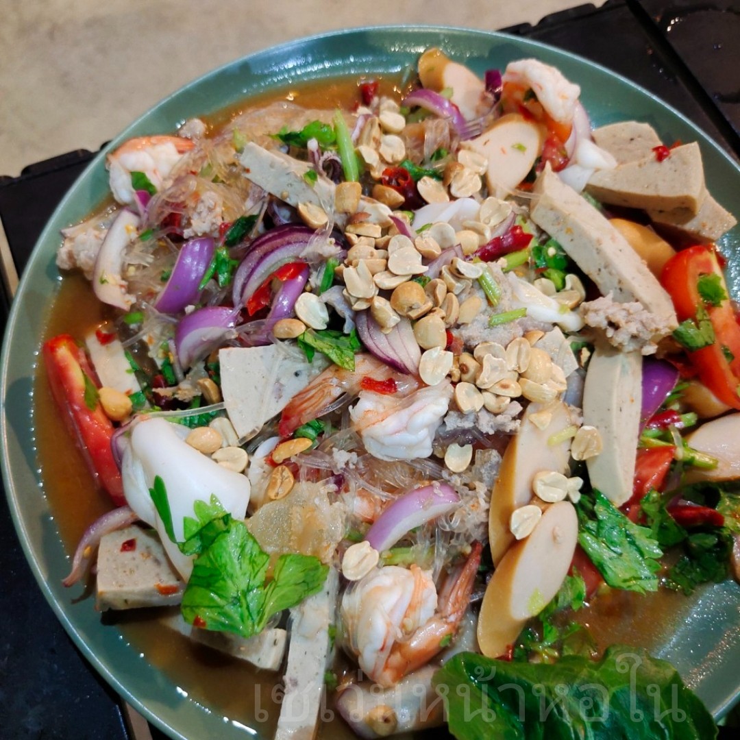 เพื่อนบ้านอีกคนทำยำวุ้นเส้นรวมมิตรมาร่วมด้วย จานเบ้อเริ่มเลย อร่อยมากครับ