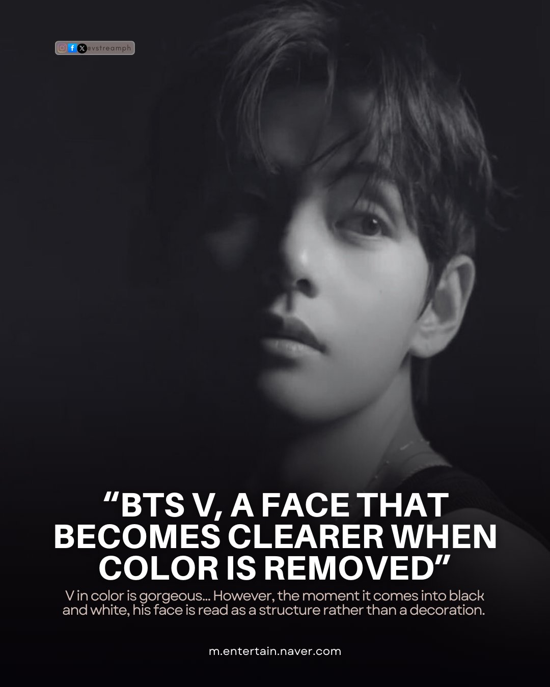 แต่สำหรับ วี สมาชิกวง BTS แล้ว เขากลับดูแข็งแกร่งขึ้นในสถานการณ์นี้ เมื่อไม่มีสี เขาไม่ได้ดูเบลอ แต่กลับดูชัดเจนขึ้น🔻