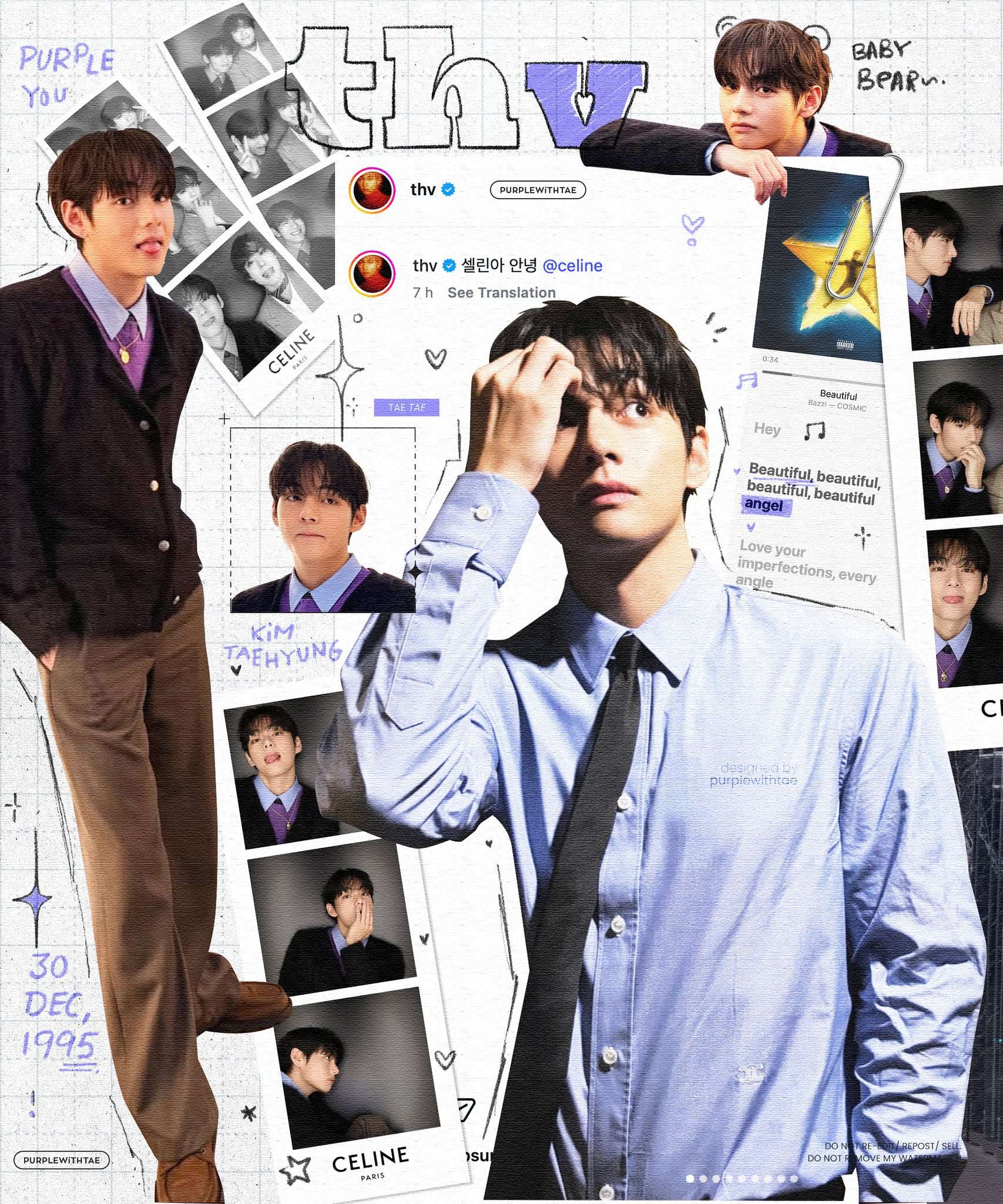 วี หรือ คิม แทฮยอง ดูโดดเด่นสะดุดตาเมื่ออยู่ในภาพสีสันสดใส บนเวที เขาเปล่งประกายท่ามกลางแสงไฟ และในภาพถ่ายแฟชั่น เขามีสีสันและดึงดูดสายตาอย่างไม่มีที่ติ