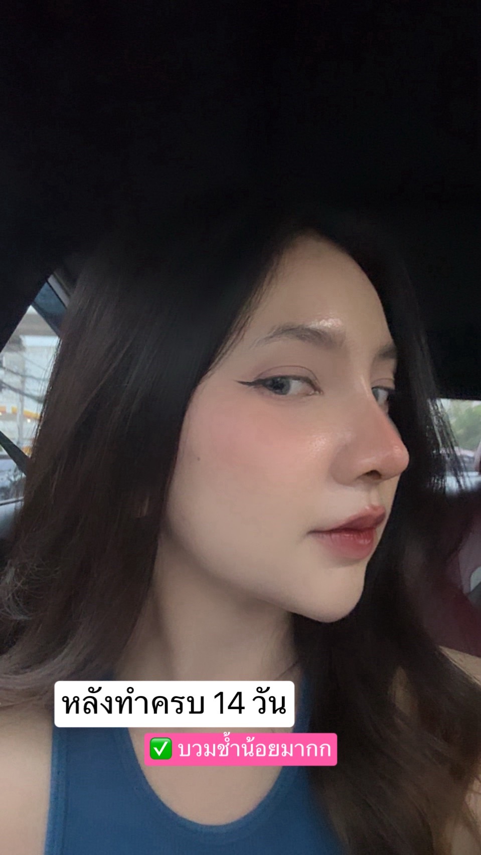 บวมน้อยมากกก ยังมีเขียวช้ำอยู่บ้างแต่สามารถใช้ชีวิตประจำวันได้ปกติเลยยยย สบายมากๆ❤️