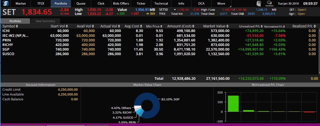 เท้าความก่อนนะครับ ก่อนหน้าที่ผมจะมีเงินมาลงทุนหุ้น ICHI พอร์ตผมก้าวกระโดดจากหุ้น SGP หุ้นตัวนี้เป็นหุ้นเปลี่ยนชีวิตผมตัวแรกครับ ผมถัวหุ้นที่ราคา 11 บาทกว่าผมทนถือตัวนี้เกือบ 4 ปี ด้วยเงินเกือบทั้งหมดของผมที่สะสมมาจากการลงทุนตั้งแต่ปี 2008 ตอนนั้นเงินเริ่มต้นผมอยู่ที่ 1 ล้านบาทแล้วค่อยๆเพิ่มเป็น 5 ล้านและผมเก็บกำไรมาเรื่อยๆที่ละน้อยๆ ไม่เคยได้กำไรจากหุ้น 1 ตัวเกิน 30% เลยครับ ( ตอนนั้นผมแทบไม่เข้าใจการลงทุนแบบ VI อย่างถ่องแท้เลยครับ ทั้งๆทีช่วงเริ่มลงทุนผมก็ซื้อหนังสือตีแตกของท่านอาจารย์นิเวศมาอ่านแล้ว ) ตอนนั้นผมมองว่า SGP มีอนาคตจากการซื้อคลังเก็บแก๊ส 2 แห่งที่จีนและราคายังถูกผมเลยสะสมมาเรื่อยๆแล้วก็รอครับ ด้วยความเชื่อของผมพอถึงเวลาของมัน หุ้นก็ค่อยๆไต่ระดับขึ้นไปจาก 9 บาทขึ้นไปพีคที่ราคา32 บาท ( ราคาก่อนแตกพาร์ ) ผมขายเฉลี่ยไปที่ราคา 29 บาทครับ จากนั้นผมก็เอาเงินทั้งหมดไปลงทุนต่อกับอิชิครับ