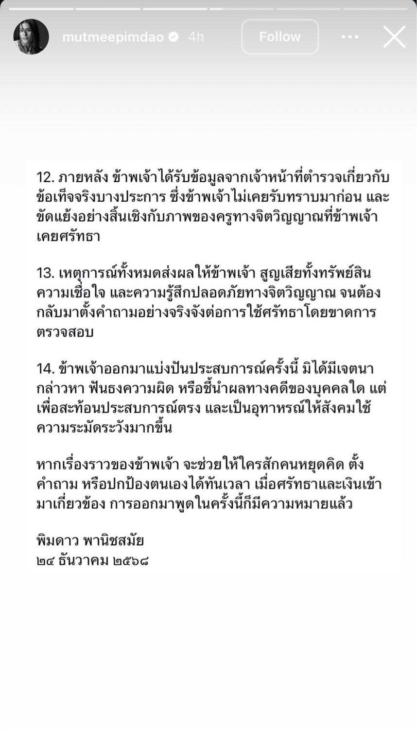 มัดหมี่ พิมดาว เล่าอุทาหรณ์สูญเสียกว่า8ล้าน ปฏิบัติธรรมกับ อาจารย์ ต.