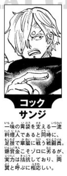 แม้ค่าหัวของ Sanji จะน้อยกว่า Zoro แต่ในแง่ของความแข็งแกร่ง ทั้งสองคนถือว่า เท่าเทียมกันไม่มีใครด้อยกว่าหรือเหนือกว่าใคร