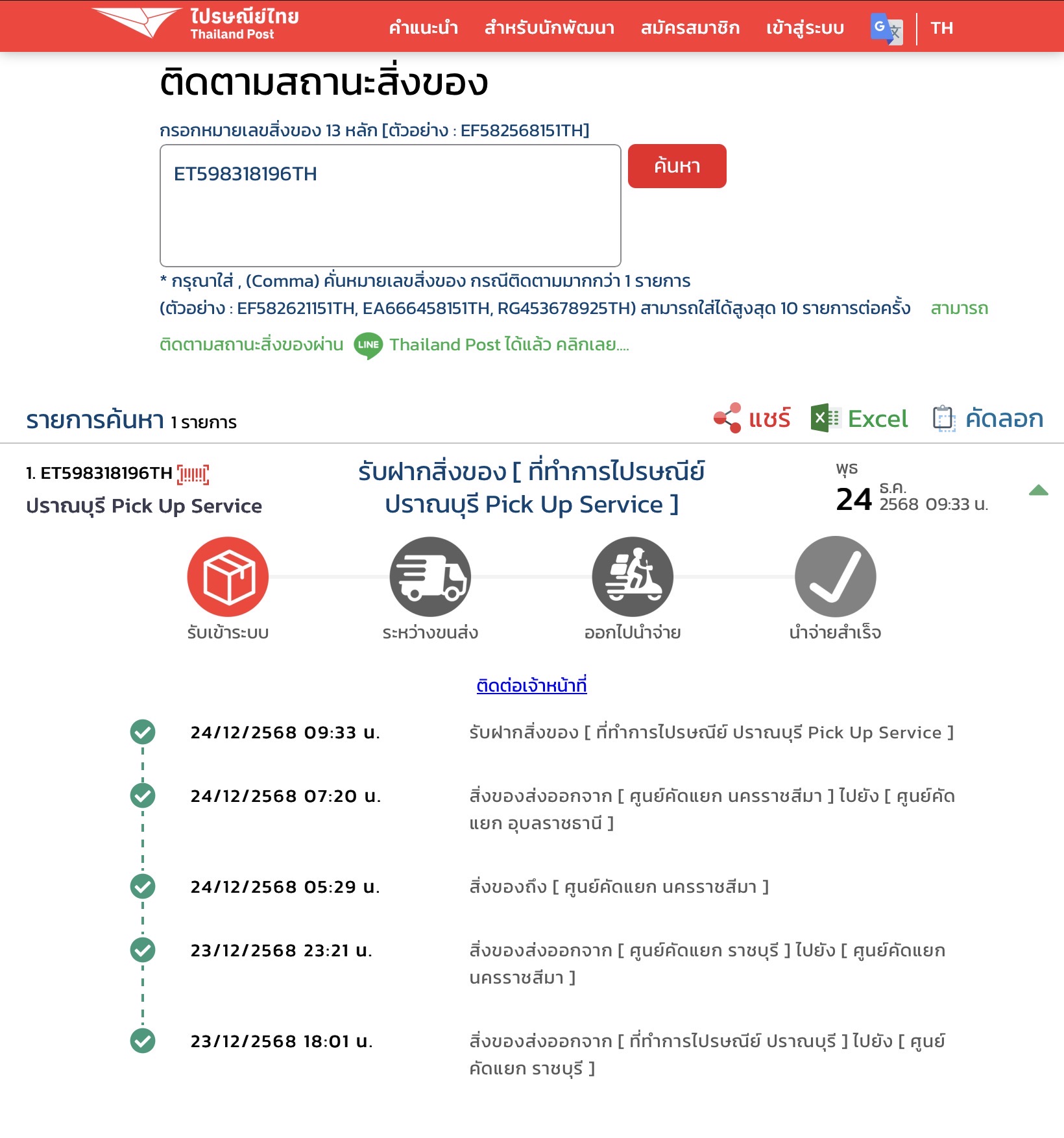 คือไม่เข้าใจว่าของมาถึงนครราชสีมามาแล้วแล้วก็กำลังจะไปที่อุบลแต่ขึ้นรับฝากของที่ปราณบุรีคือลงใต้แล้วแบบนี้ของจะได้ตอนไหน