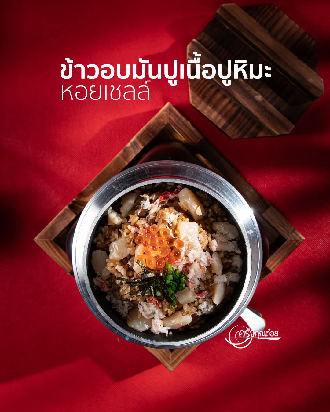 ข้าวอบมันปูเนื้อปูหิมะหอยเชลล์ ร้าน BIue Ocean Sushi