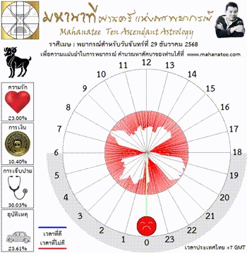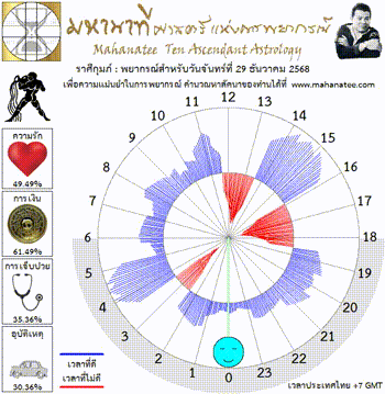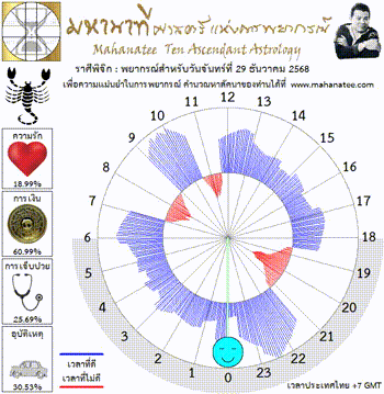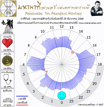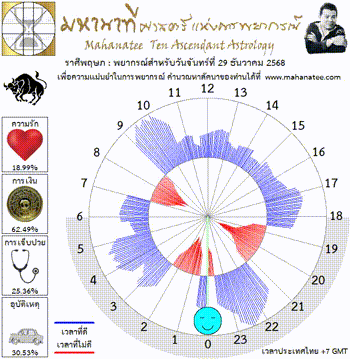 แผนภูมิและพยากรณ์ 12 ราศี สำหรับ วันจันทร์ที่ 29 ธันวาคม 2568