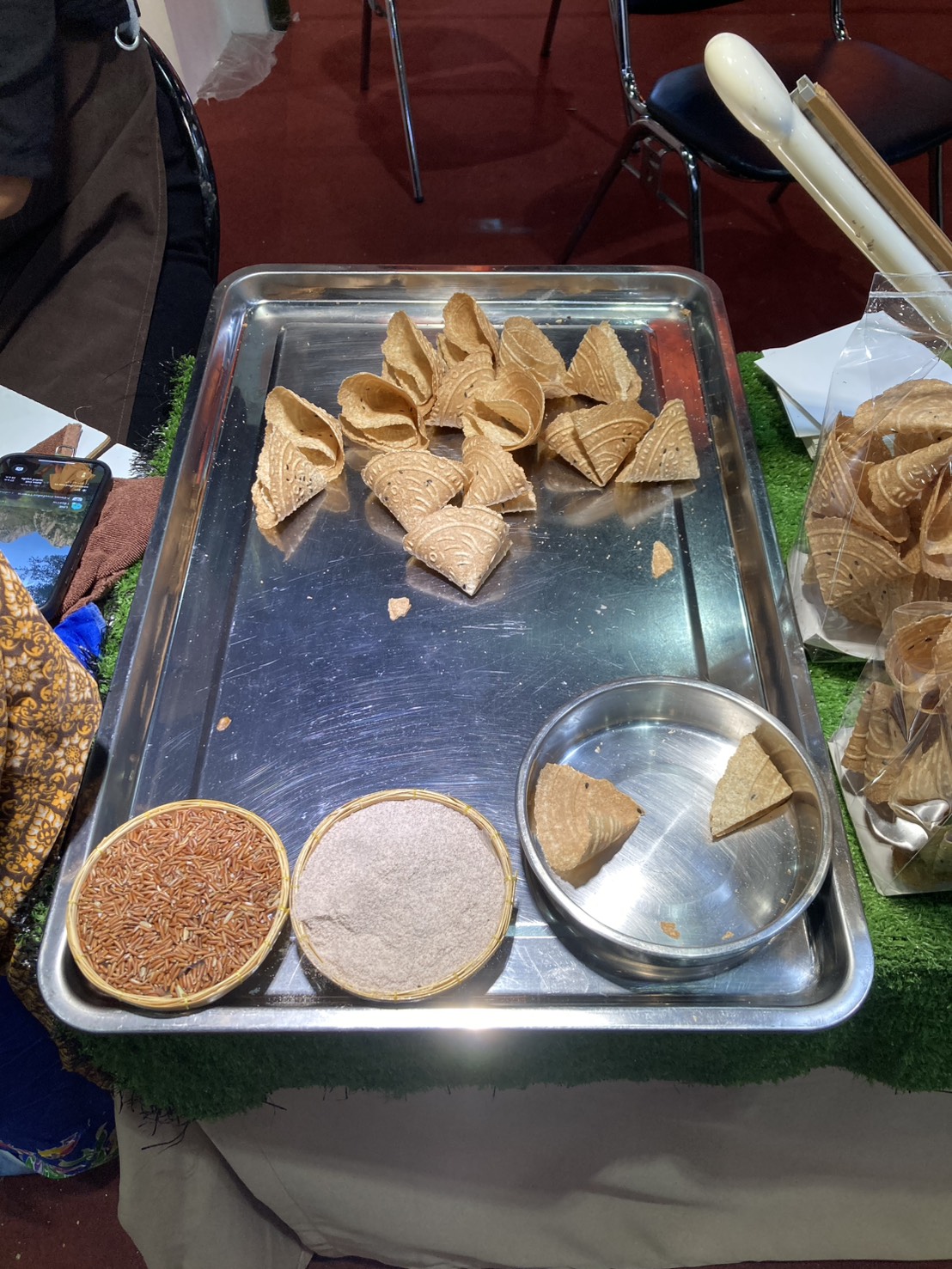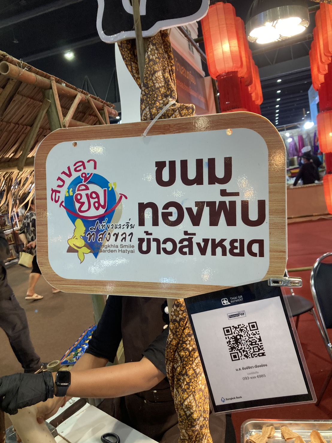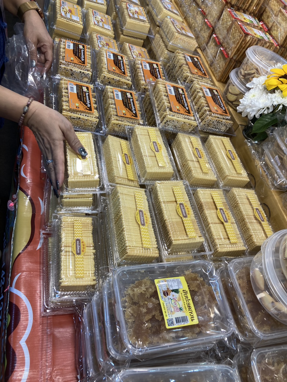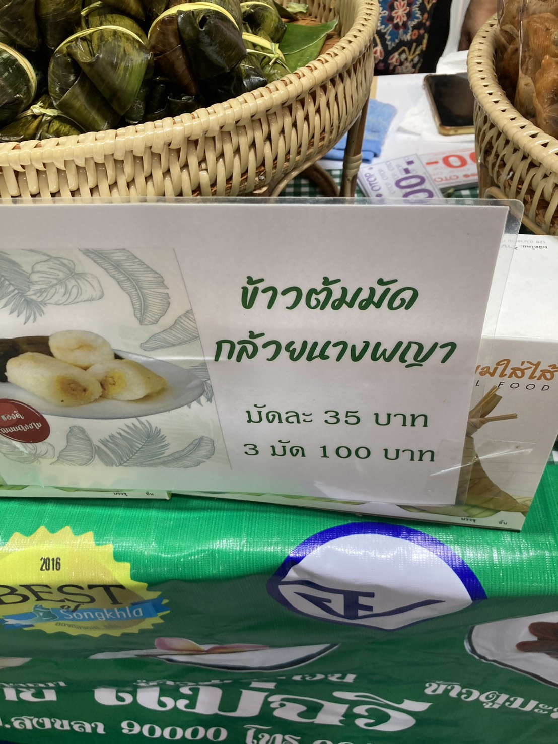 ก่อนจะไปถึงร้านป้า เจอร้านทองพับทำจากข้าวสังข์หยด แวะซื้อก่อน