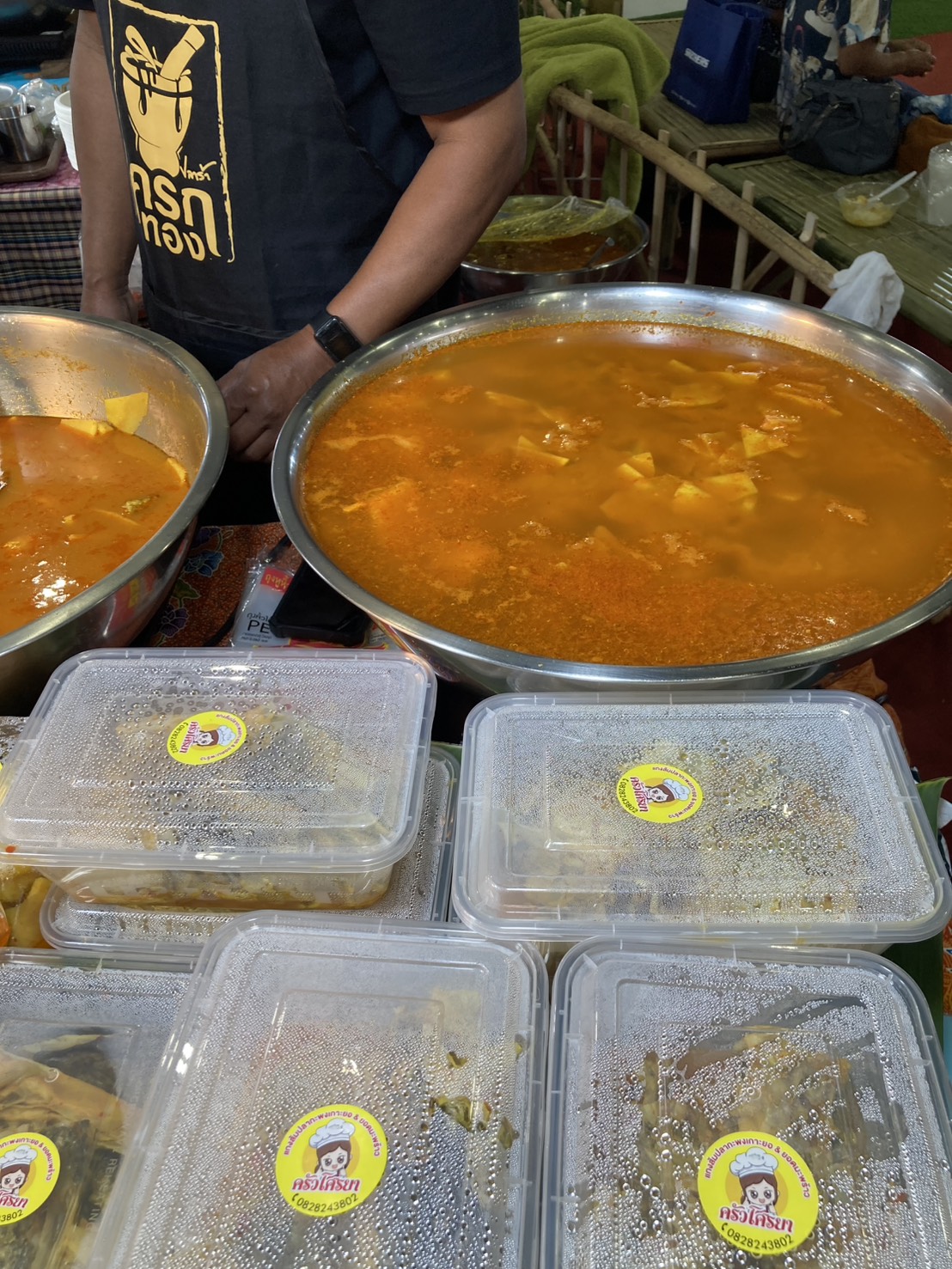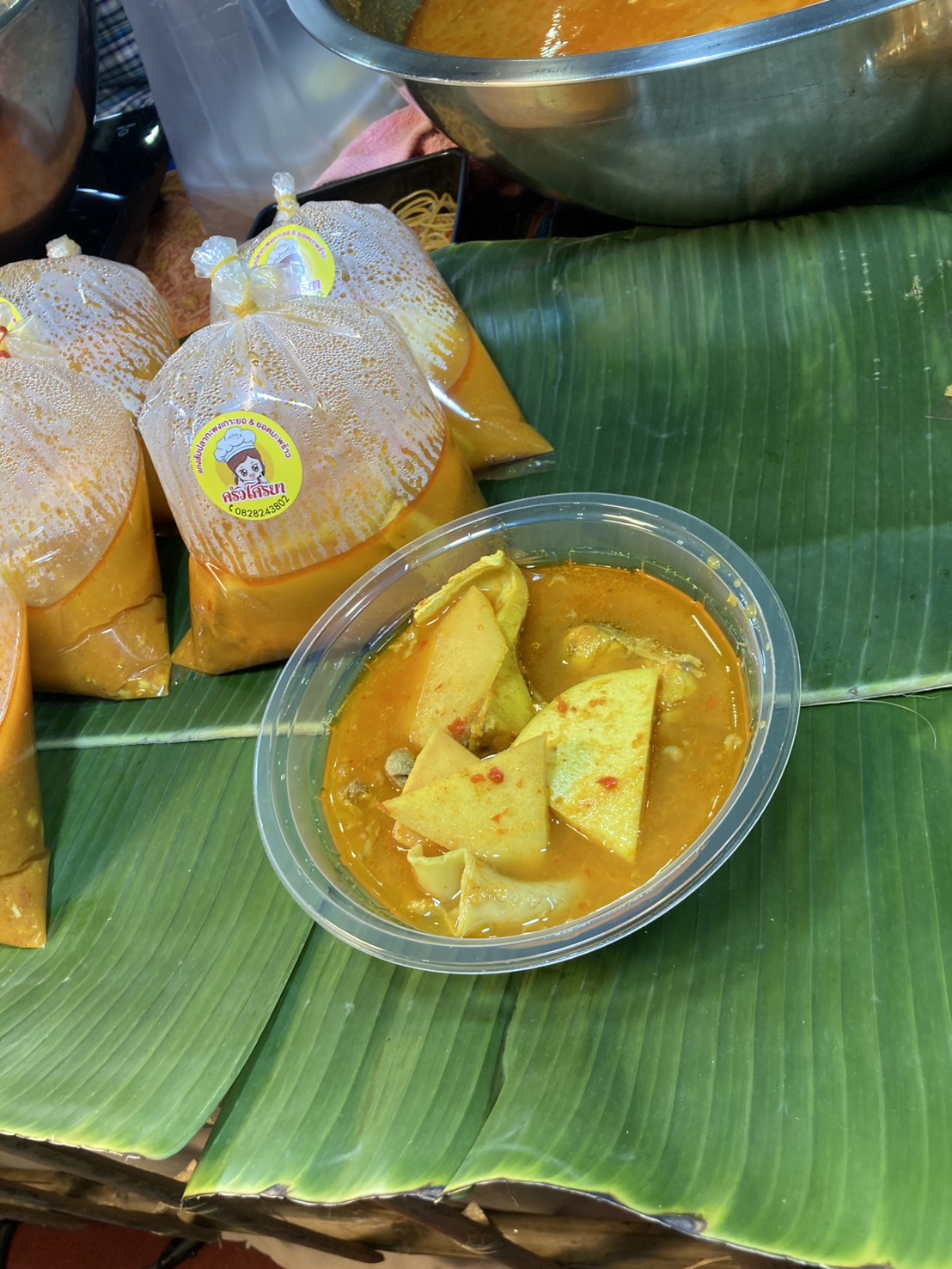 แกงเหลืองยอดมะพร้าว ปลากะพงถุงละ 100 อร่อยมาก ซื้อมา 2 ถุงค่ะ ยืนรอนานมากขายดีจริงๆ