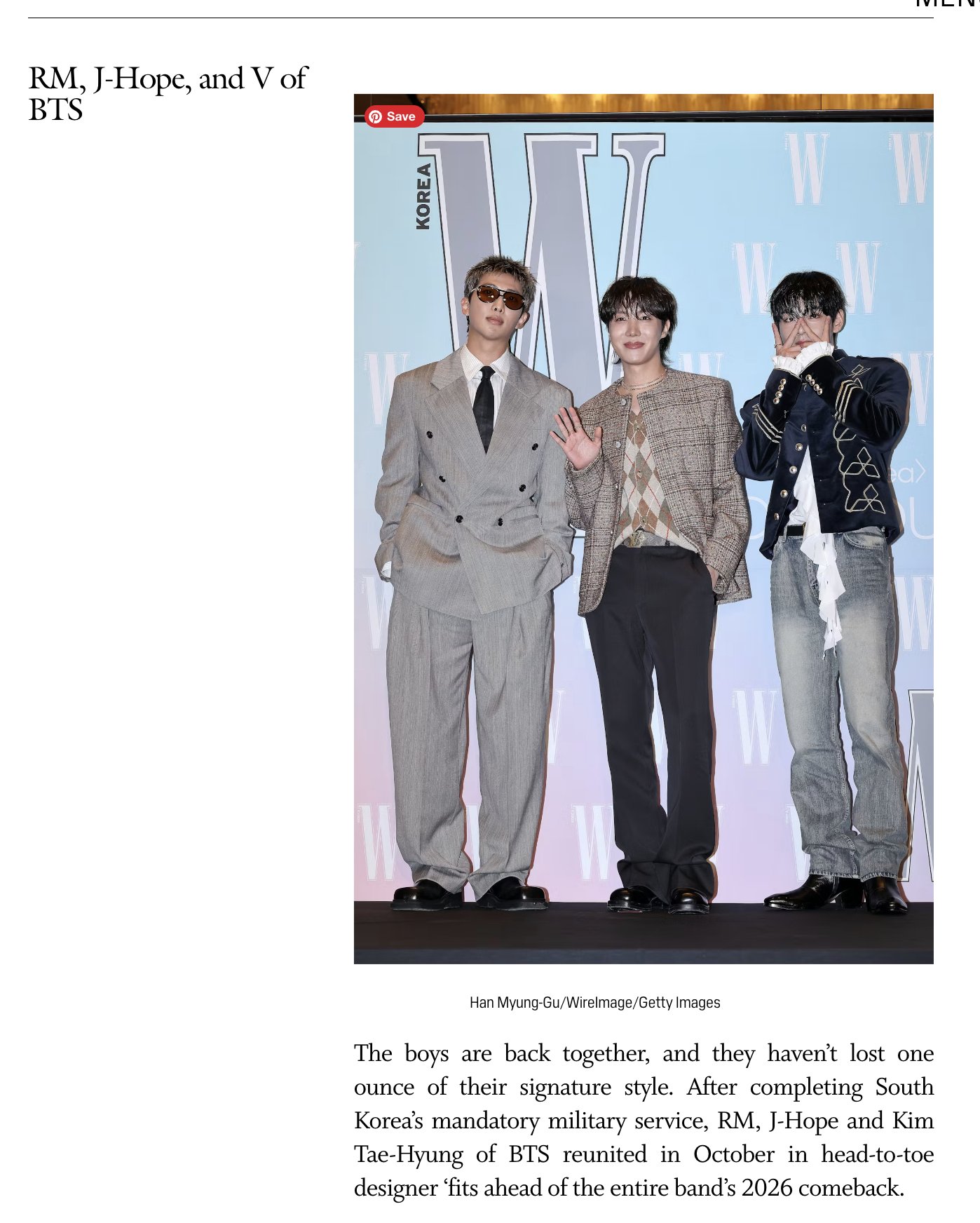 W Magazine ได้เลือก 👉 RM , J-hope , V ไว้ใน 📷 "17 โมเมนต์แฟชั่นเสื้อผ้าบุรุษของคนดังยอดเยี่ยมแห่งปี 2025"