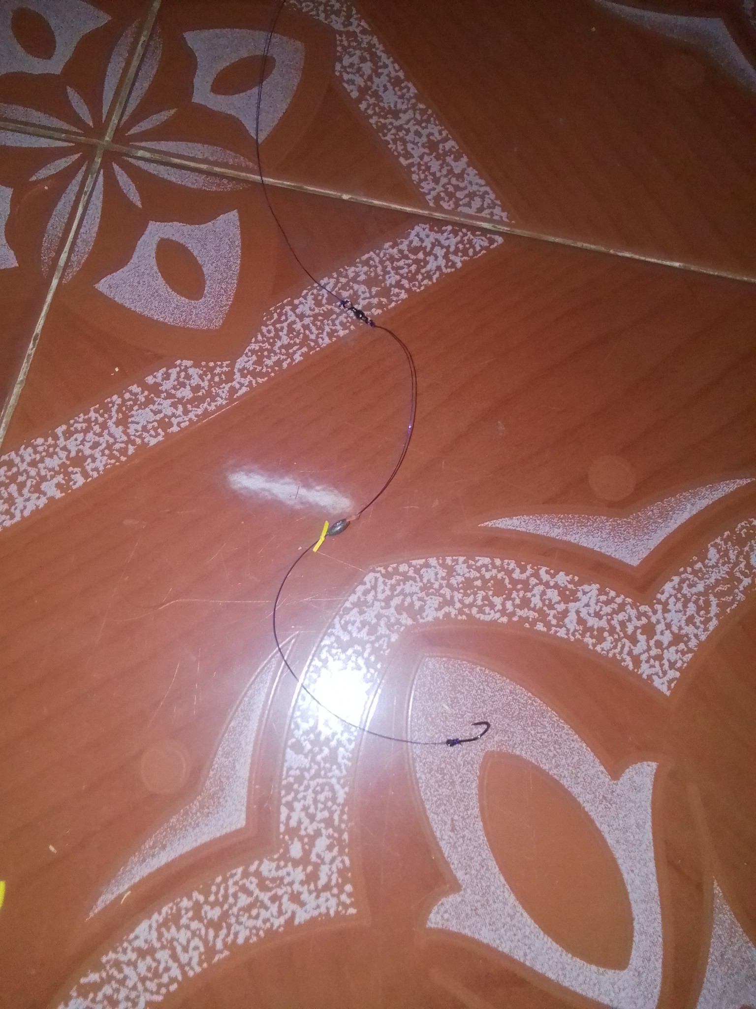 รูปต่อมาคือตะขอเบ็ดตะกั่วกับลูกหมุนส่วนที่เป็นหนังยางมัดไว้ผมทำเป็นสต๊อปเปอร์นะครับผมว่าผมทำถูกไหม
