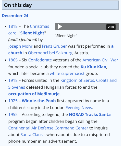 สำหรับ 24 ธันวาคมปีนี้ก็เป็นแบบนี้ เพลงคริสต์มาส “Silent Night” บรรเลงเป็นครั้งแรก จริงๆ แล้วชื่อเพลงน่าจะเป็นภาษาเยอรมันนะ “Stille Nacht”