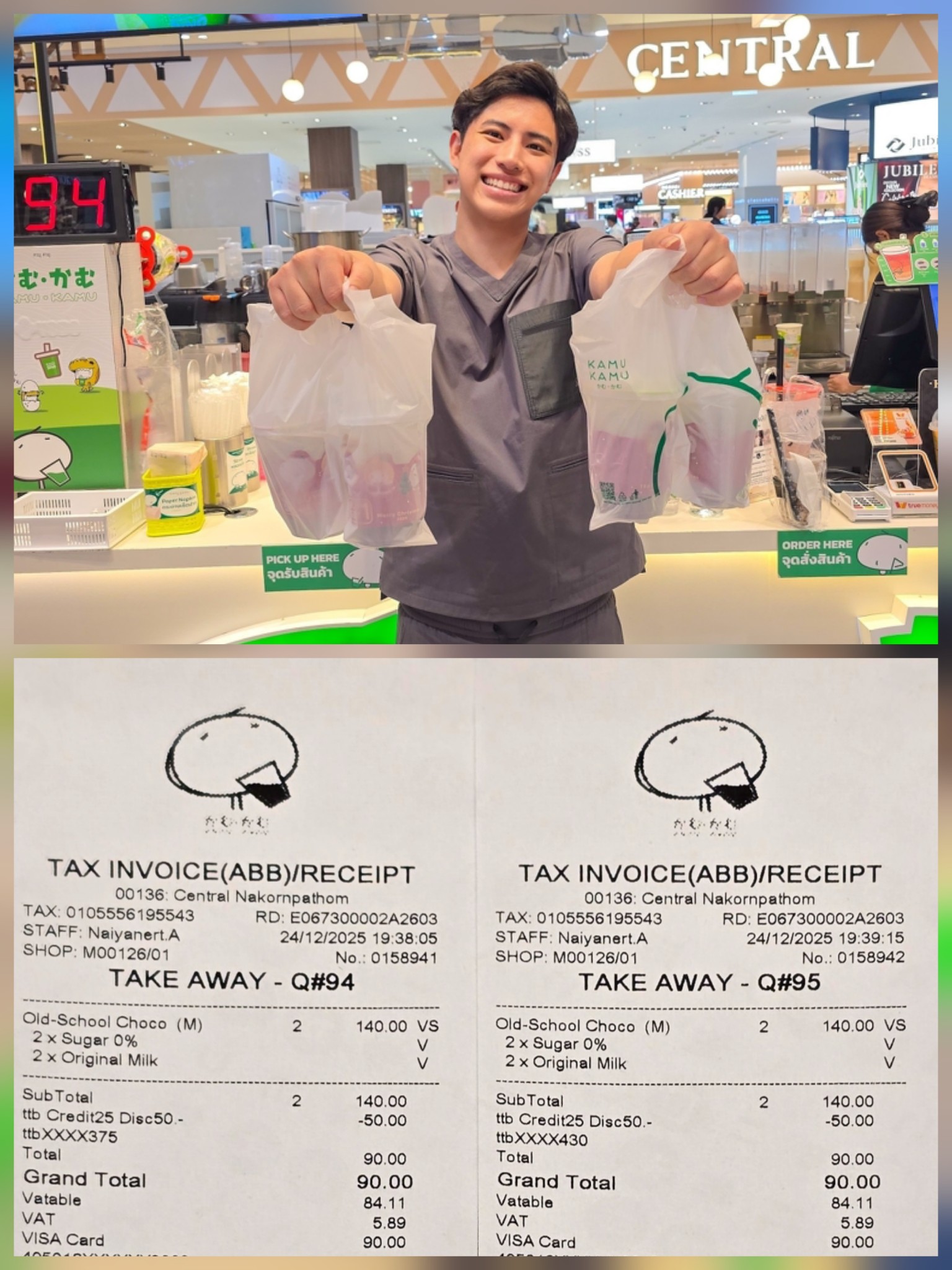 สิ่งที่ได้: จัด Old school Milo หวาน 0%, no ice ใบเสร็จละ 2 แก้ว (เดิมชอบชาเขียวนม แต่เขาเลิกขาย เลยขอไมโลรถโรงเรียนแทนครับ!)