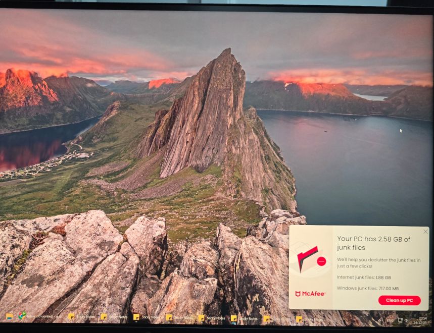 จากรูป หลายๆครั้ง มันจะมีโฆษณาจาก McAfee โผล่มาที่มุมล่างขวาตามรูป มันพอมีวิธีปิดกั้นมันไหมครับ ไม่ต้องให้มันโผล่มา เดี๋ยวๆก็โผล่มาตอนเปิดเครื่อง เราก็ต้องคอยปิด อยากกันไม่ให้มันโผล่มาเลย มีวิธีไหม หรือต้องถอนโปรแกรมมันออกไปทั้งหมด คือ McAfee มันได้มาฟรีพร้อมกับเครื่องคอม(พึ่งซื้อมาไม่นานนี้) ก็เลยลองใช้ดู