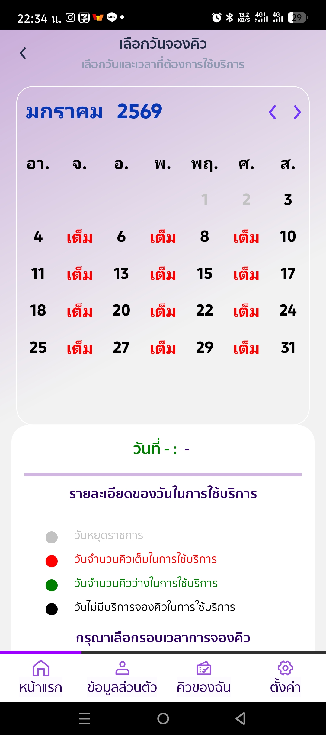 แล้วขึ้นว่าเป็นวันไม่มีการจองคิวในการใช้บริการอยากทราบว่า