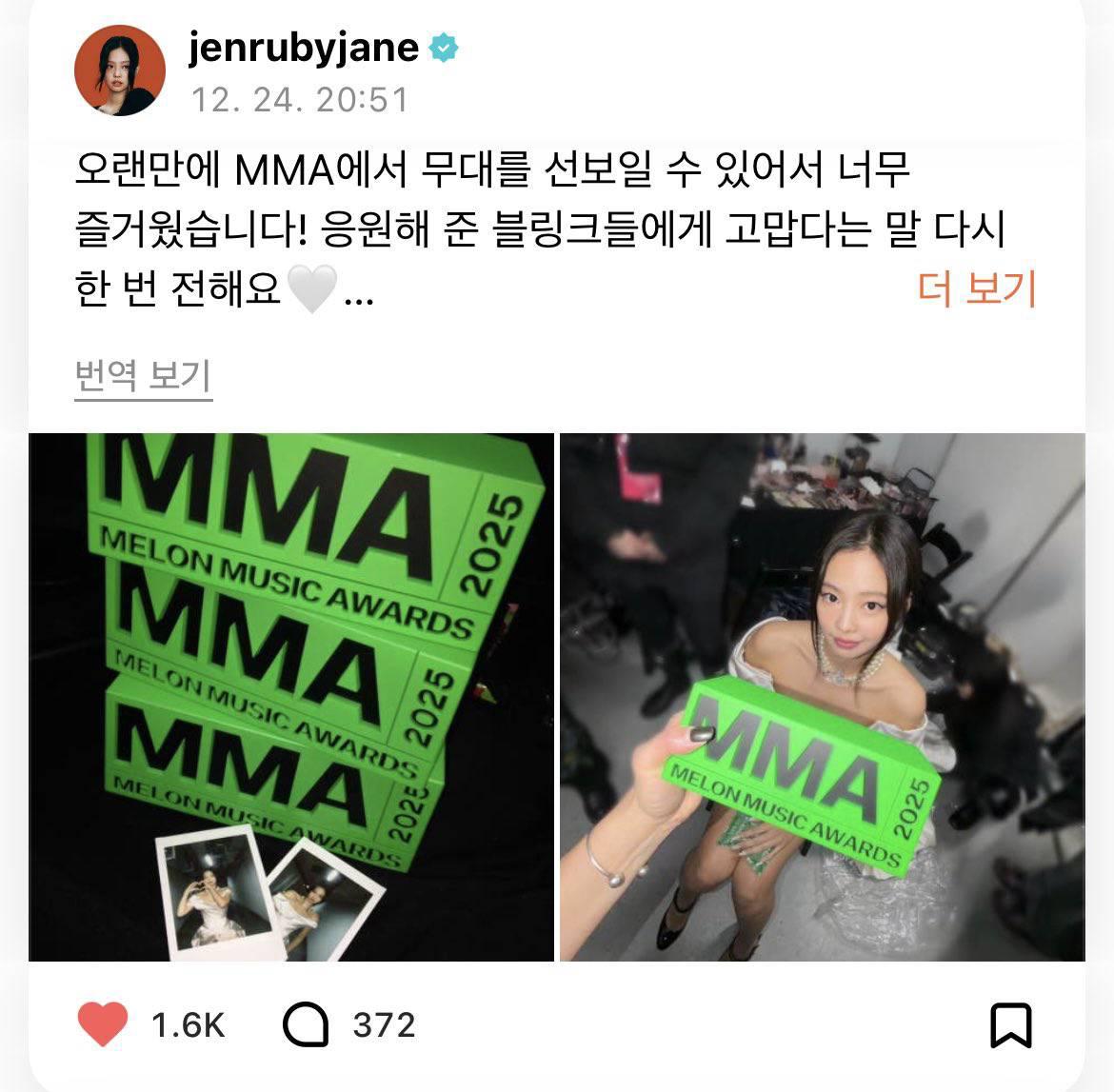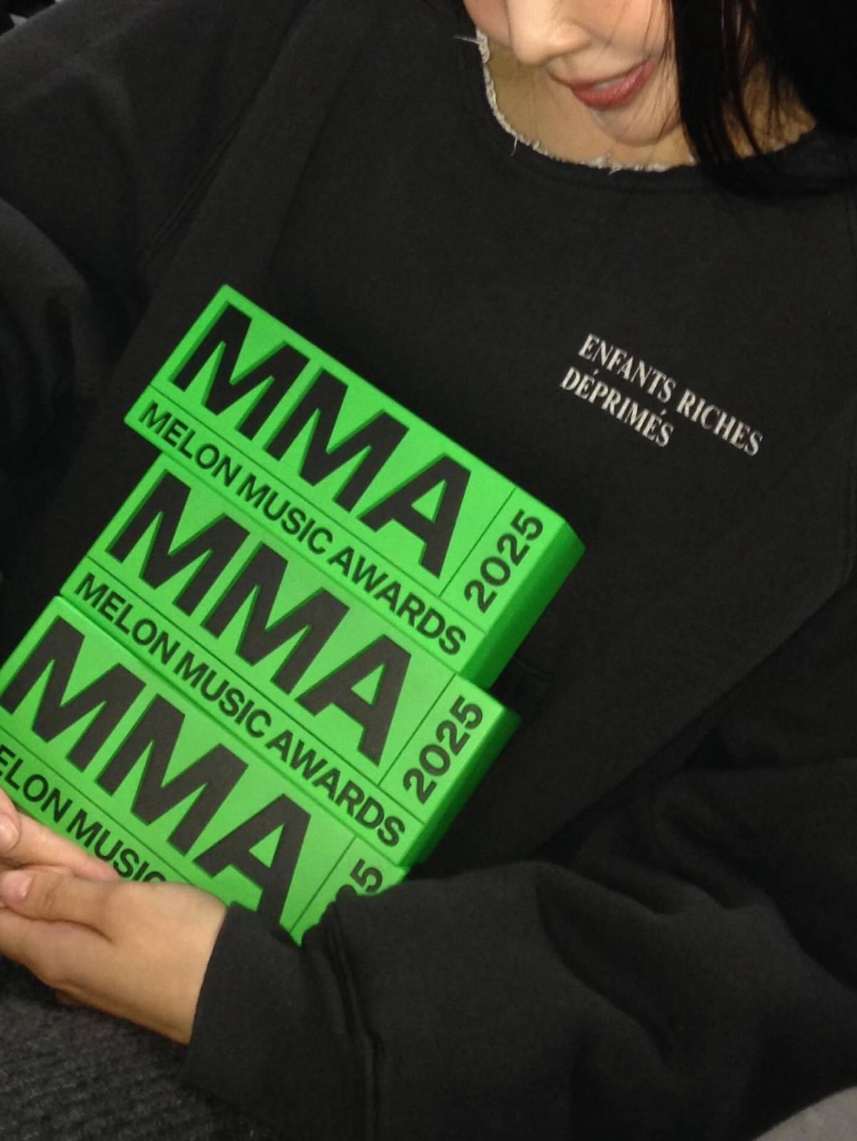 “ปิดท้ายปี 2025 ด้วยการขึ้นเวทีงานประกาศรางวัลอีกครั้งหลังจากหายไปนาน ครั้งนี้ฉันได้ทุ่มสุดตัวเลย ขอบคุณทีมงานทุกคนที่ช่วยกันเตรียมงาน MMA ขอบคุณแดนเซอร์ทั้ง 50 คน และผู้กำกับเวทีสุดเท่ทั้ง 3 คน และที่สำคัญที่สุด ขอบคุณครอบครัว OA ของพวกเรา ที่อยู่เคียงข้างกันเสมอมา เวทีที่พวกเราสร้างร่วมกัน ฉันจะเก็บไว้ในใจตลอดไปเลยค่ะ ขอบคุณจากใจจริงถึงทุกคนที่มอบความรักให้กับเพลงและอัลบั้มของฉันในปีนี้นะคะ จะตอบแทนความรักที่ได้รับด้วยภาพลักษณ์และผลงานที่ยอดเยี่ยมยิ่งขึ้นแน่นอนค่ะ