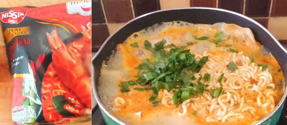 นิชชินต้มยำกุ้งน้ำข้น + เกี๊ยวหมู