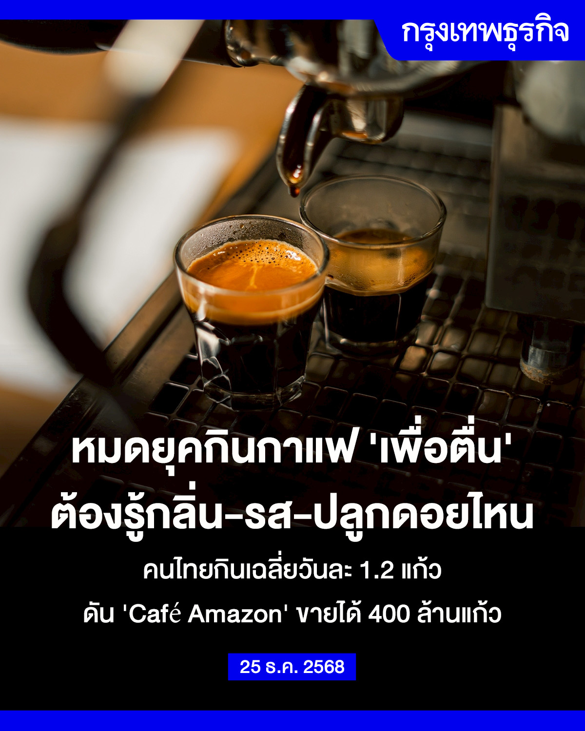 คนกินเยอะขึ้นแต่ผลผลิตน้อยลง “Café Amazon” เผยอินไซต์ คนไทยกินกาแฟอายุน้อยลงเรื่อยๆ แต่ก่อนกินเพื่อตื่น-ไปสอบ เปลี่ยนเป็น “Emotional Coffee” ต้องรู้ Taste Note-ได้กลิ่นอะไร-ปลูกที่ไหน ชี้ แก้วกาแฟกลายเป็นไลฟ์สไตล์ บอกตัวตน-รสนิยม ภาพรวมคนไทยกินกาแฟเยอะขึ้น เฉลี่ย 1.2 แก้วต่อวัน