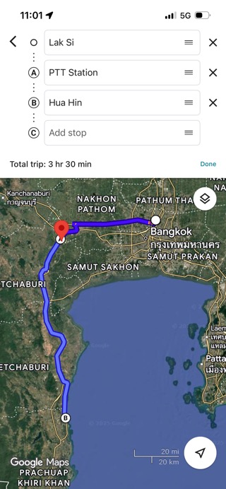 จะขับรถจากแถวหลักสี่ไปหัวหิน แต่ไม่อยากผ่านเส้นพระราม 2 ที่มีการก่อสร้าง