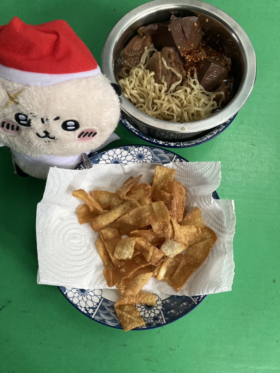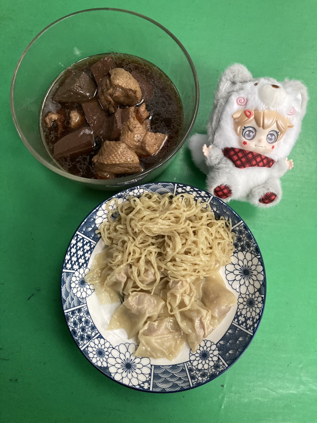 ชามนี้ของน้องค่ะ เป็นแบบน้ำ แต่น้องไม่อยู่ เลยต้องแยกส่วนเส้นบะหมี่ กับเกี๊ยวไว้ต่างหาก น้องกลับมา