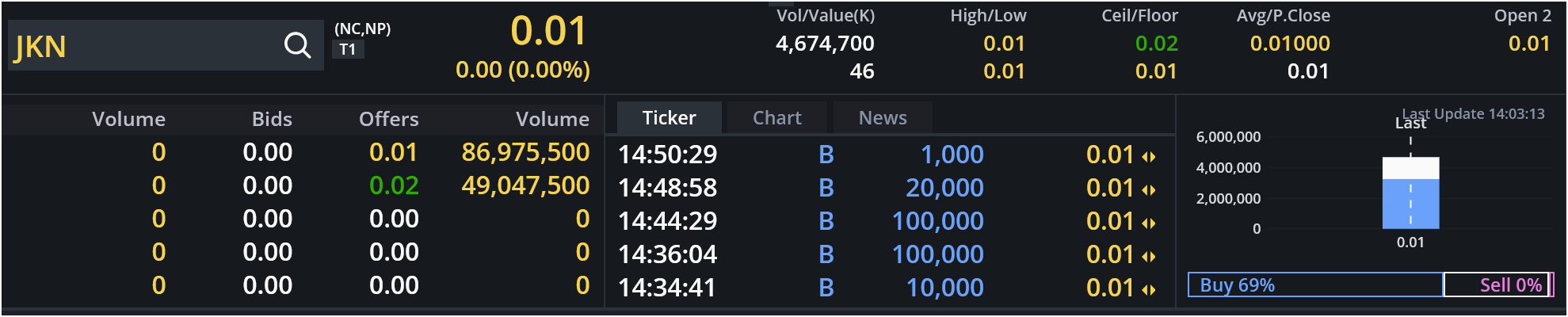 ไม่ได้ให้หวังกำไรครับ แต่หวังซื้อ สิทธิ์เข้าประชุมผู้ถือหุ้นนอกตลาด อย่างน้อยเราก็ได้เป็นเจ้าของเสียงหนึ่งเสียงที่ไปนั่งฟัง หรือ อาจจะได้ใบหุ้นไปอวดหลาน หรือ ได้จดหมาย ส่งถึงบ้าน หรือเอาไว้คุยกับเพื่อน ผมก็ขาดทุนกับ JKN เหมือนกัน เพื่อน อาจ 1 บาทหรือ 0.3 บาท แต่ คุณ+ผม ขาดทุน 0.01 บาท แต่ก็ขาดทุนเหมือนกันเอาไว้เป็นเรื่องคุยก็ได้ครับ