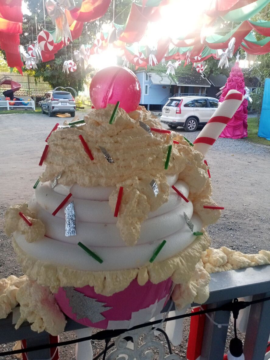 ต้นคริสต์มาส ใช้ผ้ามันแว้บพันไว้เก๋ ๆ